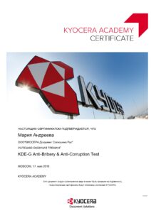 Сертификат о прохождении курса по борьбе со взяточничеством и коррупцией