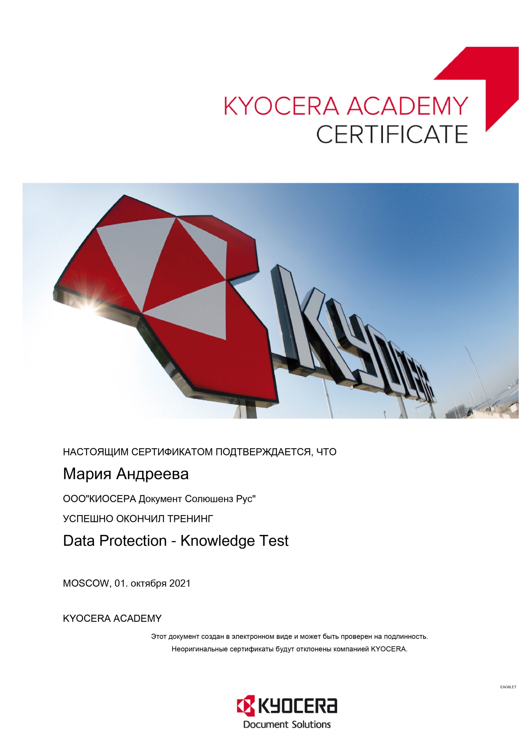 Сертифицирован в области обработки и защиты персональных данных в соответствии с международными стандартами.